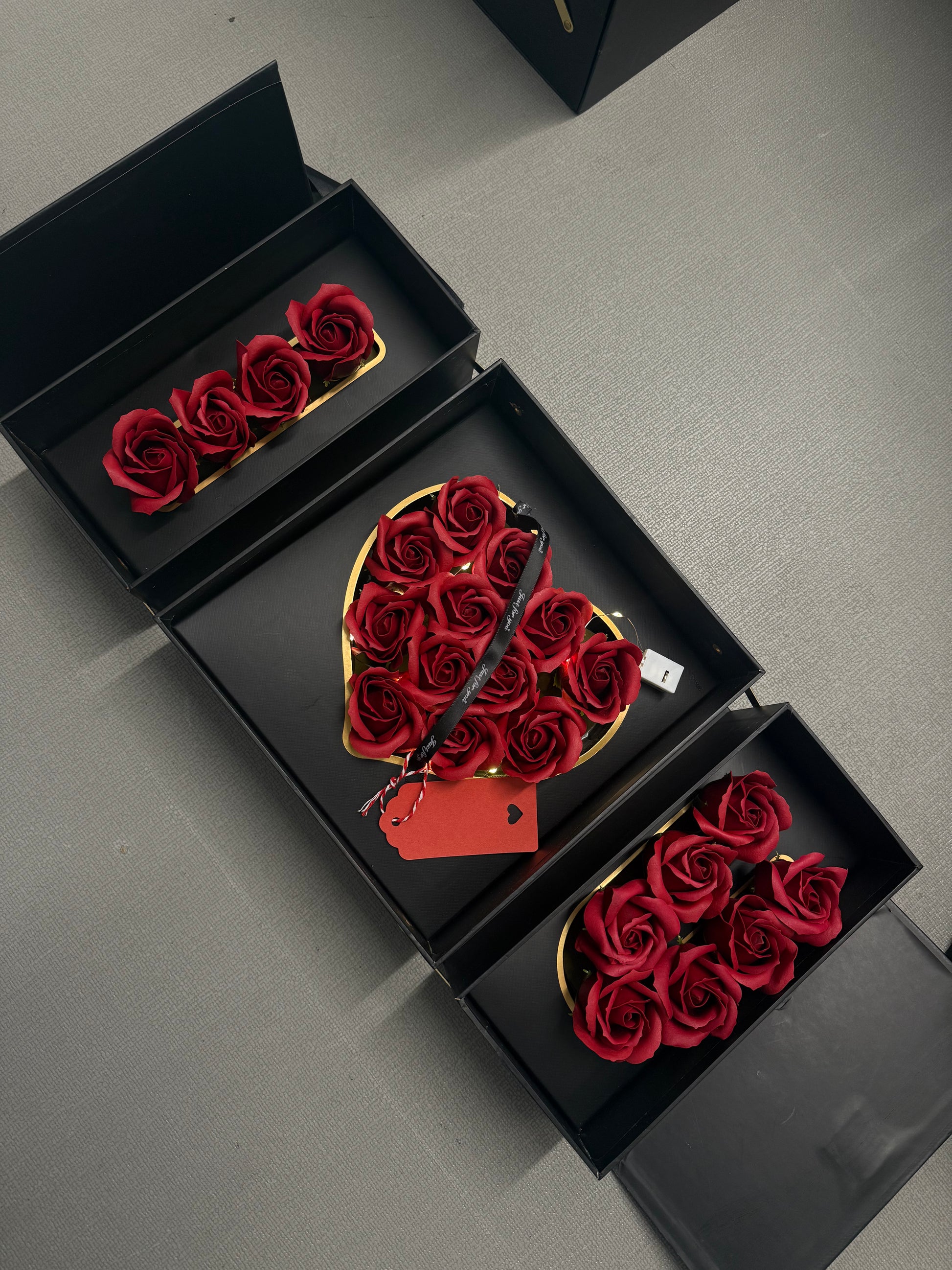Whether you're celebrating Valentine's Day, an anniversary, or simply want to show someone how much they mean to you, this red rose flower box offers the perfect way to express your feelings. The bold beauty of the roses paired with the graceful packaging creates a captivating display sure to melt their heart.